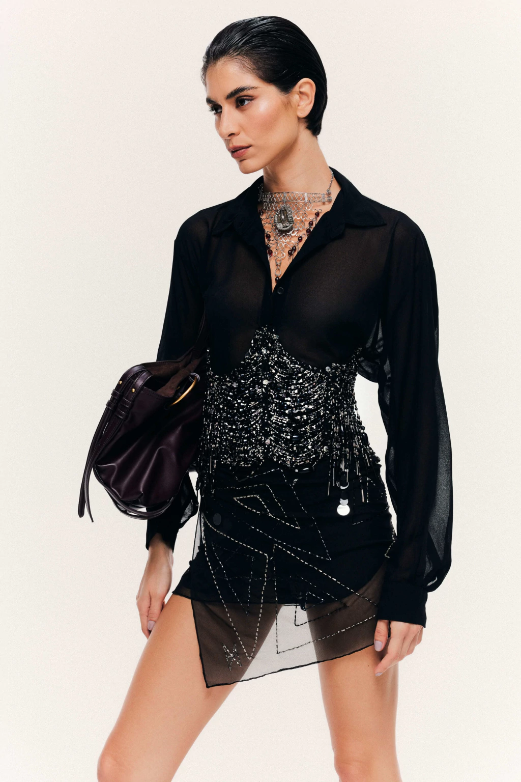 Permite ser usada tanto como saia ou top, possibilitando uma variedade de looks, alternando apenas a forma de usar