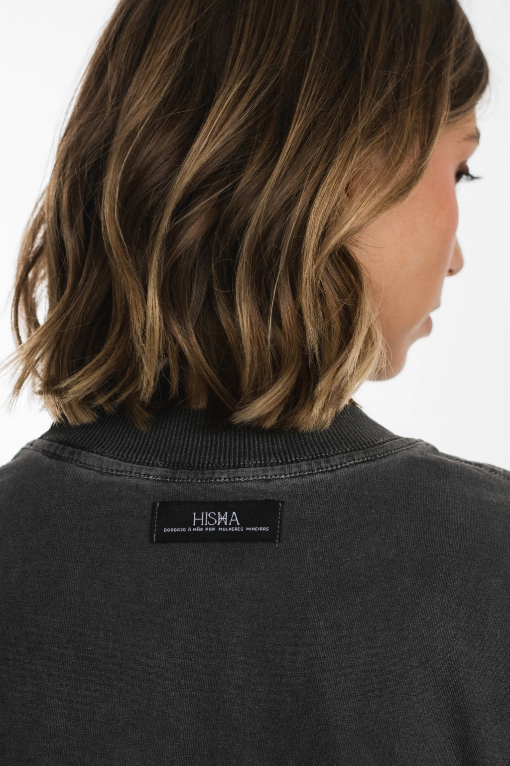 Camiseta de modelagem boxer e gola canelada. Estampada à mão, desenho inspirado em peça icônica HISHA, top corset.